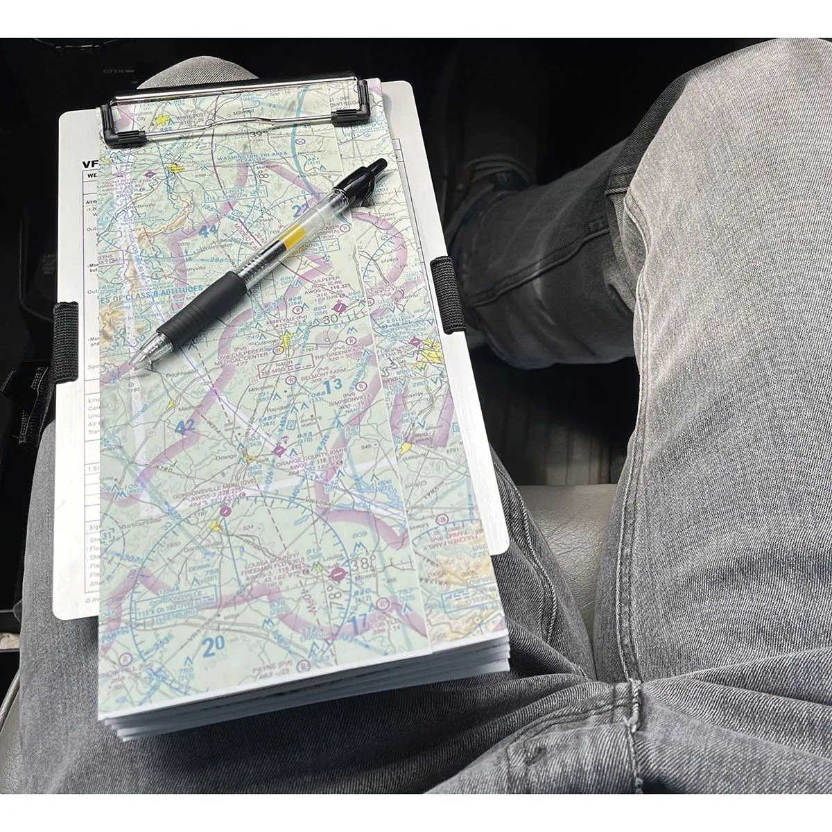 | ATRIBUTOS DEL PRODUCTO | -Material: Aluminio cepillado con tratamiento anodizado para mayor durabilidad. -Información Incluida: Reportes IFR, patrones de espera, altitudes de crucero y señales de luces. -Sistema de Sujeción: Correa elástica de 4 cm con velcro de alta adherencia. -Soporte de Escritura: Clip metálico con protector de esquinas para no dañar los papeles. |