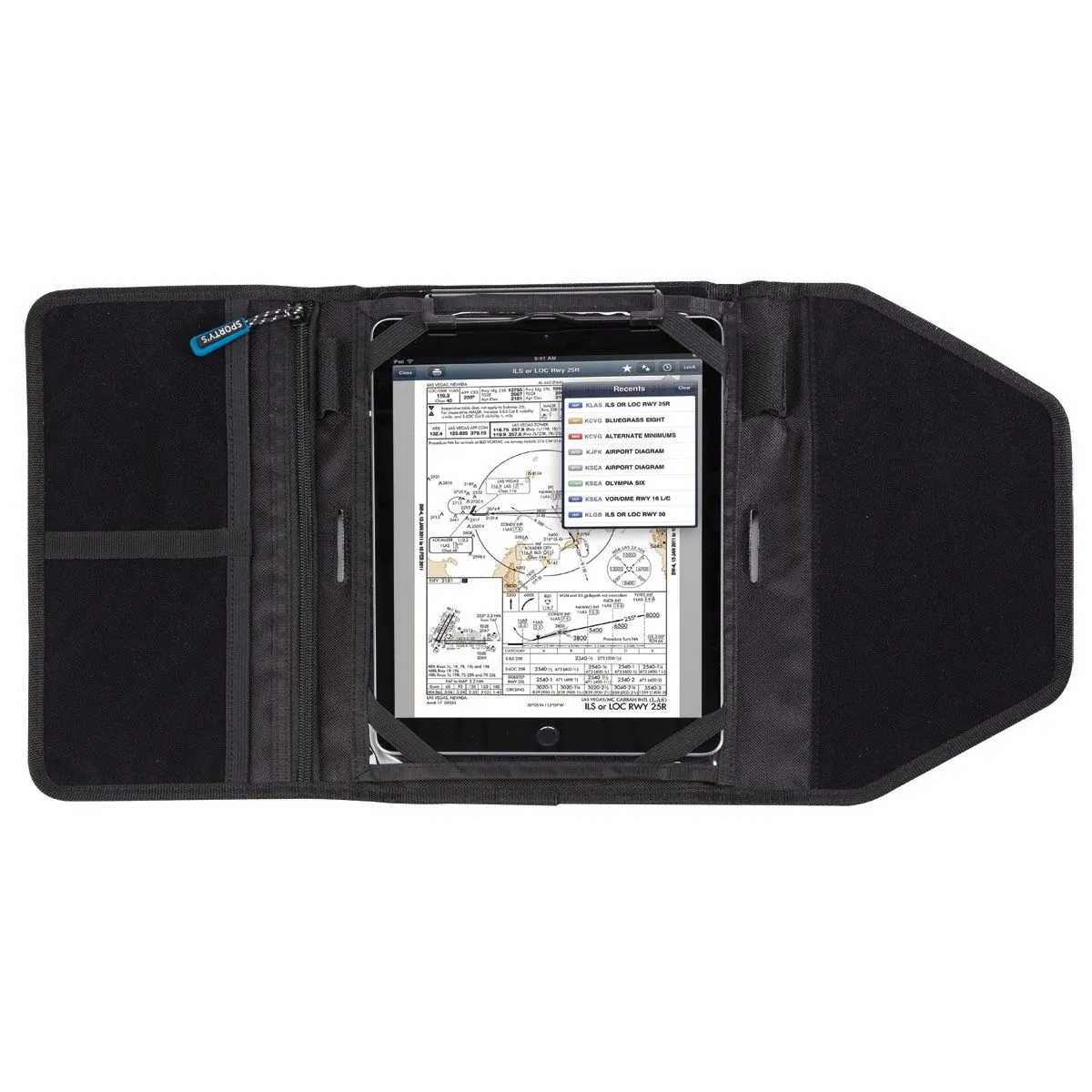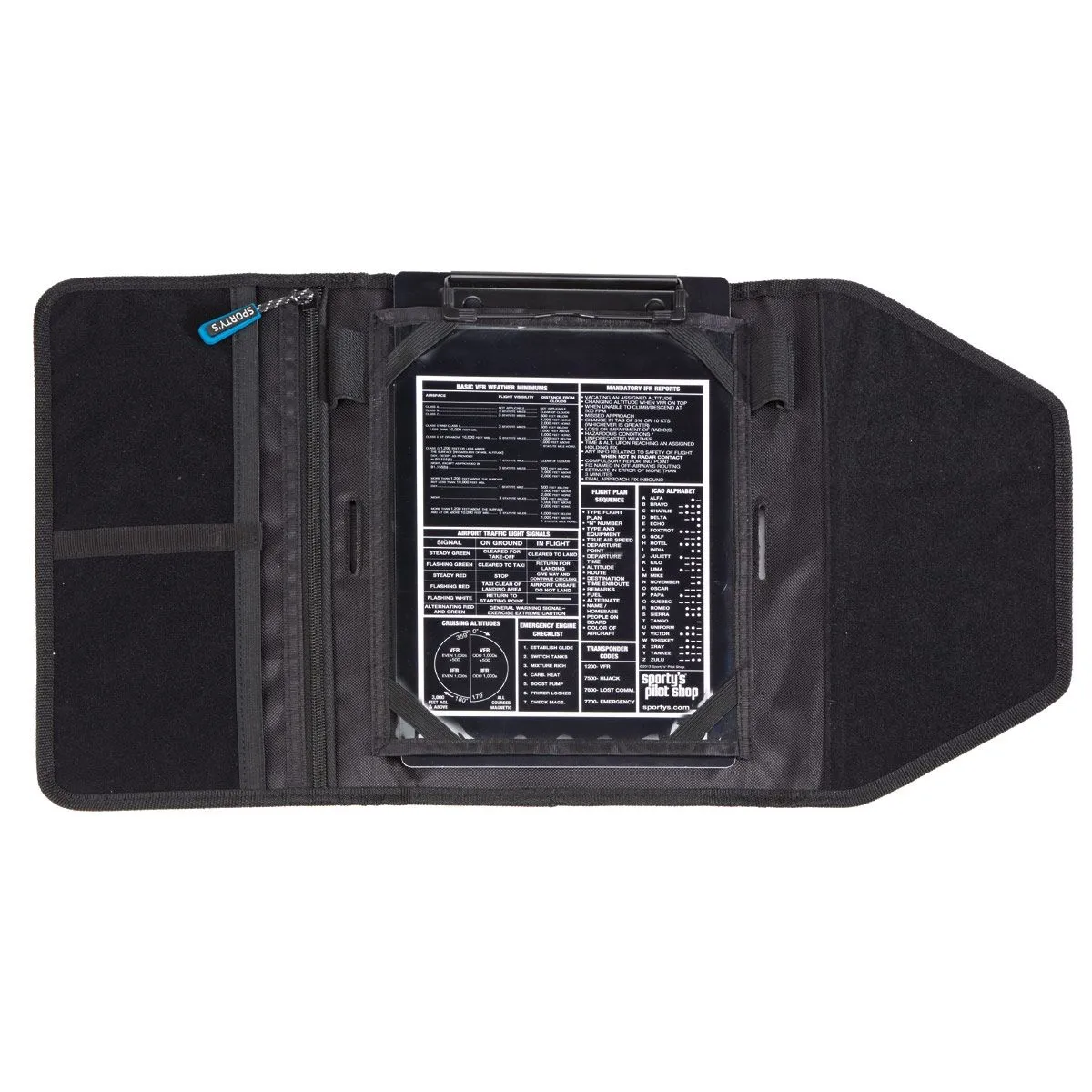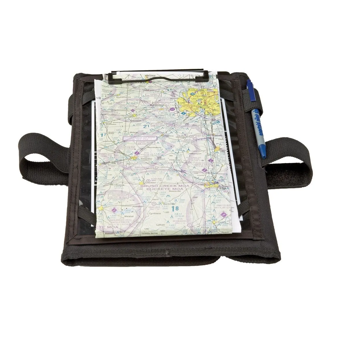 Diseño ergonómico y funcional: Kneeboard de tres paneles diseñado para mantener organizados mapas, cartas de navegación, tabletas y herramientas de escritura durante el vuelo.