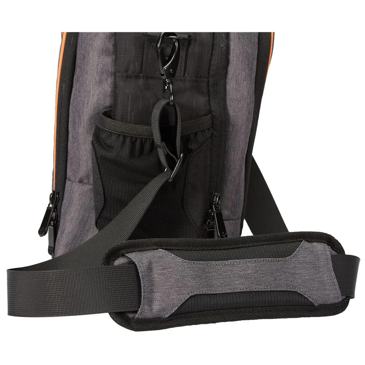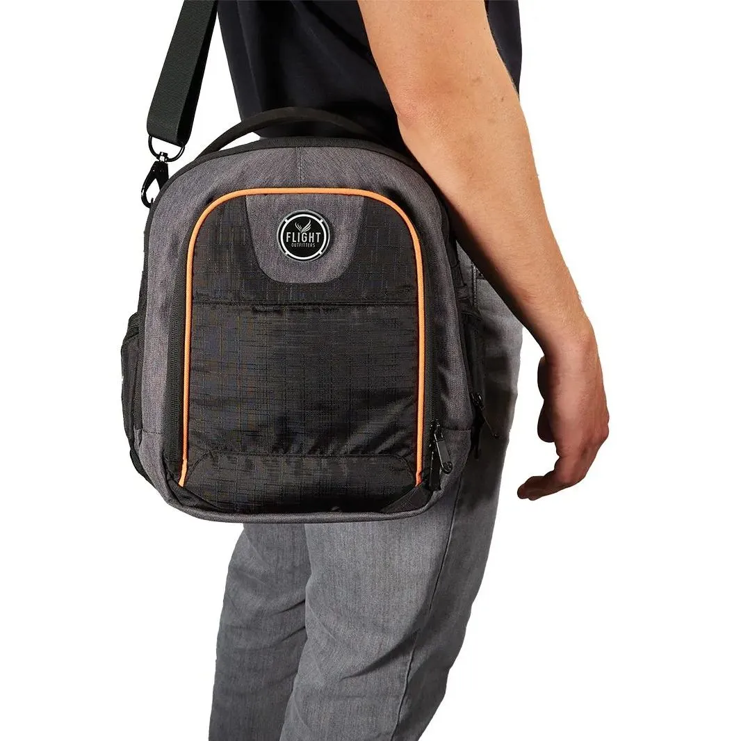 | ATRIBUTOS DEL PRODUCTO | -Material: Nylon de alta resistencia con herrajes de acero y detalles reforzados. -Compatibilidad: Espacio suficiente para un headset de tamaño completo y tabletas de hasta 11". -Color: Gris grafito con detalles en negro y forro interior naranja de alta visibilidad. -Sistema de seguridad: Cremalleras de alta resistencia diseñadas para un uso intensivo y duradero. |