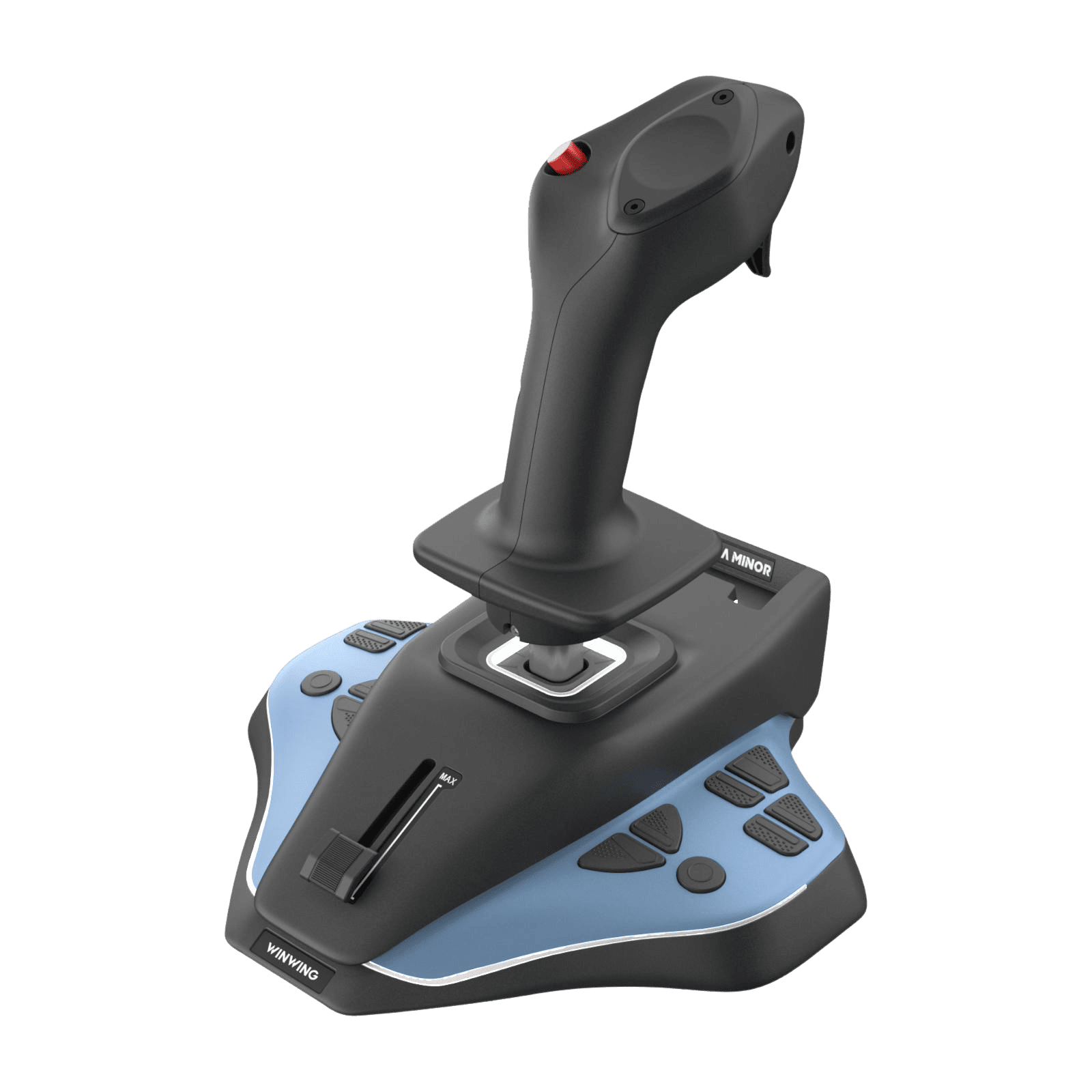 Sidestick diseñado para simulación aérea tipo airliner, con ergonomía inspirada en controles reales de cabina.